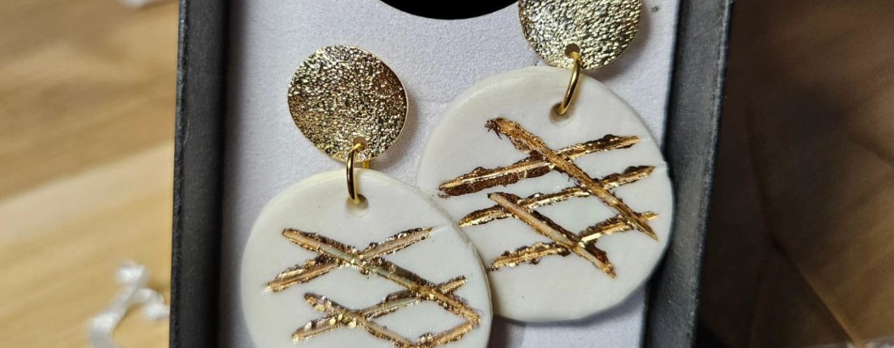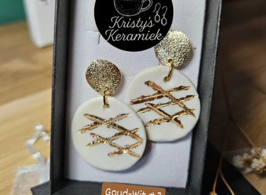 Voor de oorbellen met goud erop, start een 2e glazuurronde met 24K gouden luster die ook 3 maal wordt aangebracht. Na het droogproces worden ze nogmaals gebakken op 750 graden.