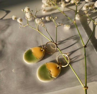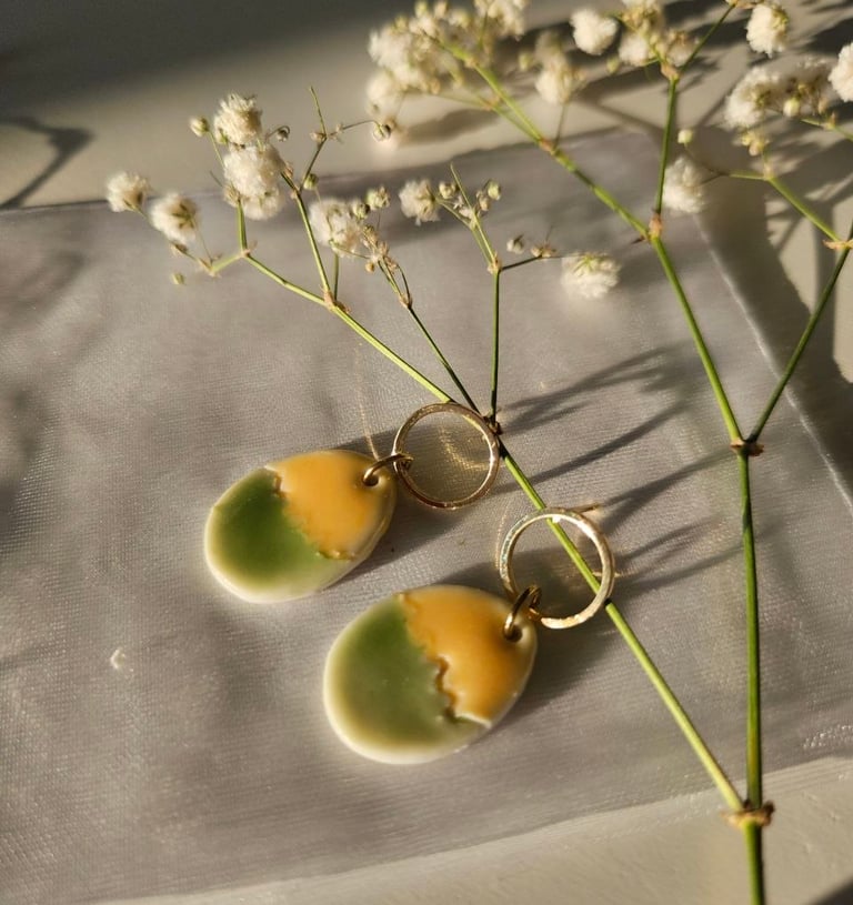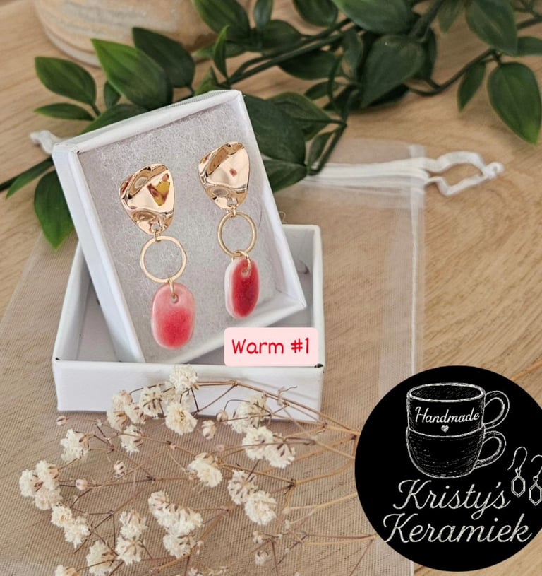 Handgemaakte porseleinen oorbellen in stijlvolle tinten.